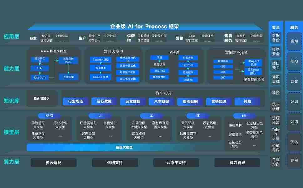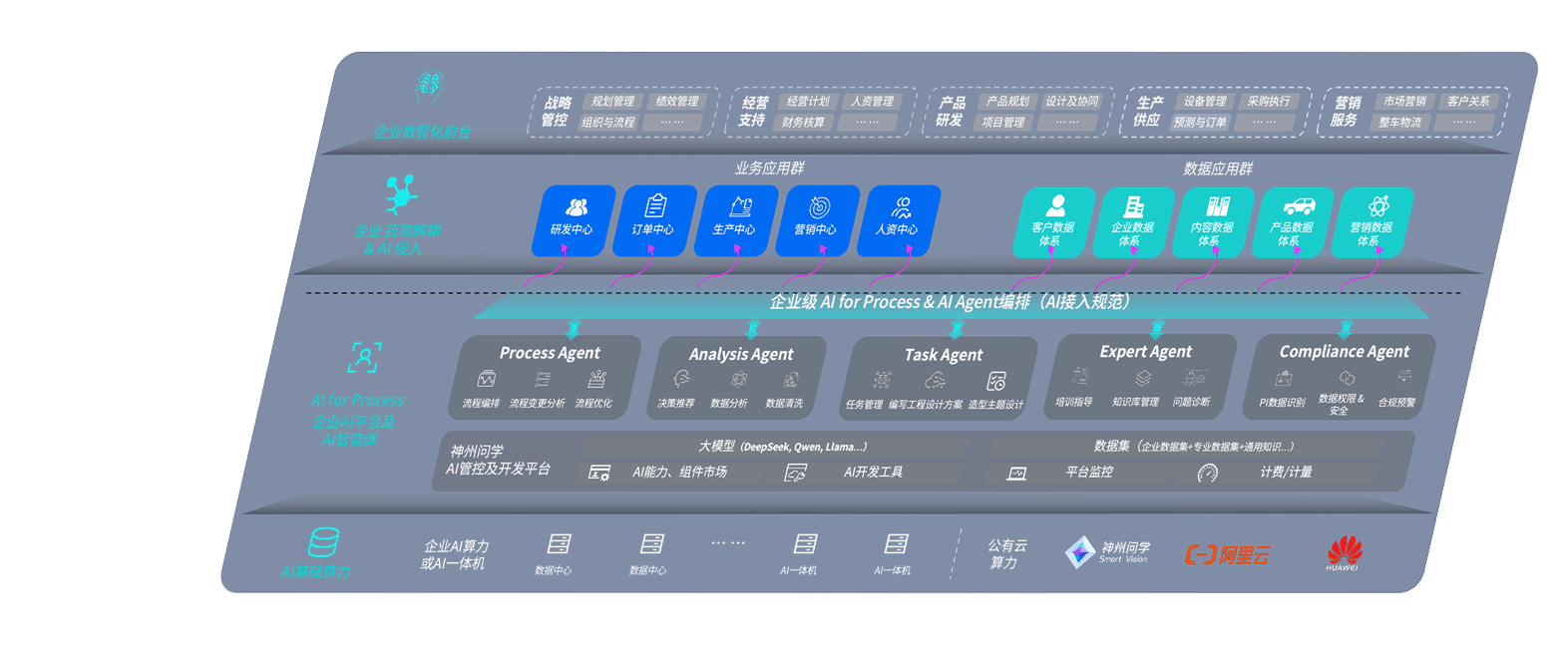 新币娱乐问学智车解决方案是一套基于AI技术的汽车行业智能化系统,,覆盖从底层算力到顶层AI应用的全栈方案。。方案由算力层、、、模型层和应用层组成:算力层,,,,方案支持多种一体机配置,,具备云端灵活部署、、、多云适配以及动态优化计算资源的能力;模型层,,新币娱乐问学平台版提供了企业级AI应用一站式构建与管理平台,,支持基于后训练强化技术的汽车企业专属模型的训练、、、、评测和运营;应用层,,,新币娱乐问学DeepSeek版提供包括超级员工、、、、智能招采、、智能营销、、、、智能客服、、、AI for BI等一系列解决方案,,可助力汽车行业实现数字化转型,,,,让管理更智能、、、、响应更敏捷。。。